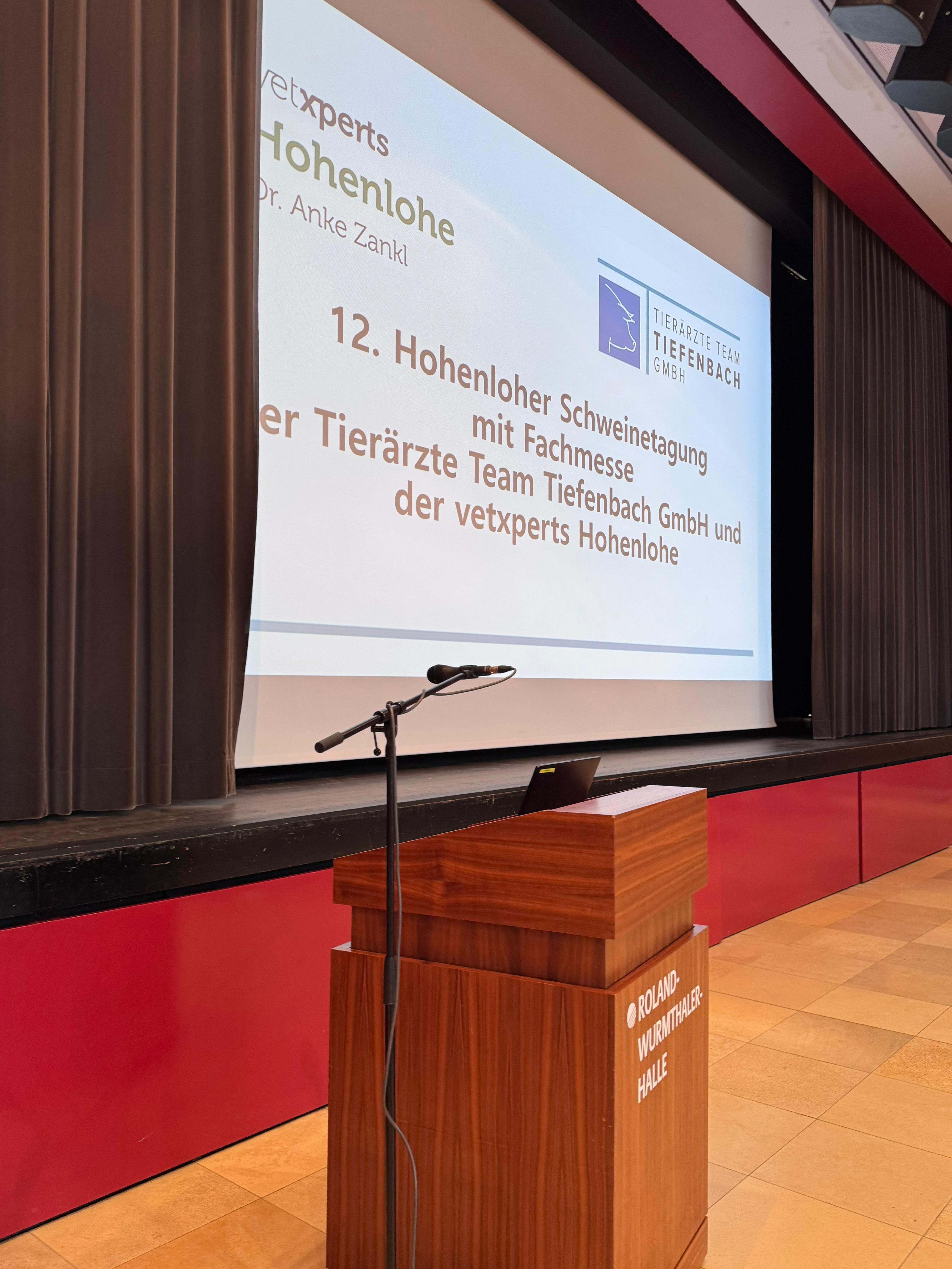 Am 17.03.2026 fand die 12. Hohenloher Schweinetagung in der Roland-Wurmthaler-Halle in Ilshofen statt. Mit gut 200 Besuchern war die gemeinsame Veranstaltung der Tierärzte Team Tiefenbach GmbH und der vetxperts Hohenlohe sehr gut besucht und bot den Landwirten neben interessanten Vorträgen und guter Bewirtung eine hervorragende Gelegenheit sich untereinander auszutauschen.